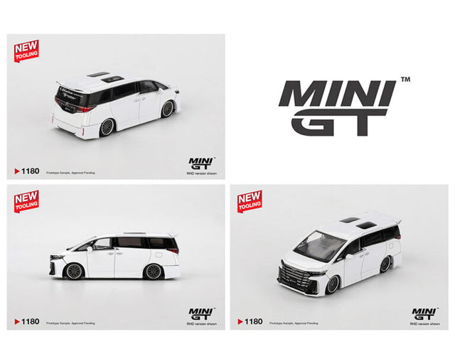 MINI GT 1:64 Toyota Vellfire 40 KUHL in white, featuring KUHL Racing’s bold widebody styling with a clean VIP-inspired look. Finished in crisp white with detailed aero parts, lowered stance, and premium proportions, this model perfectly blends luxury van presence with aggressive Japanese tuning style, making it a standout piece for collectors
