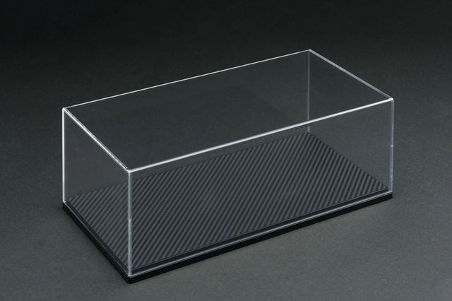 Additional Features: acrylic display case (L315 x W159 x H112mm, acrylic thickness 3mm) with high transparency and durability for 1/18 scale model car, base with carbon pattern, the case is well compatible with the regular basement of IG 1/18 scale model after the frames are removed.