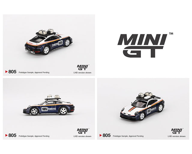MINI GT 1:64 Porsche 911 Dakar Rallye Design Package White/Gentian Blue Metallic
