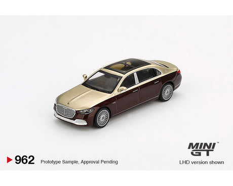 MINI GT 1:64 Mercedes-Maybach S680 in Gold / Dark Red Metallic