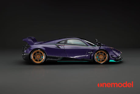One Model 1:18 Pagani Hyuara BC in Carbon Purple with Tiffany Blue Accents