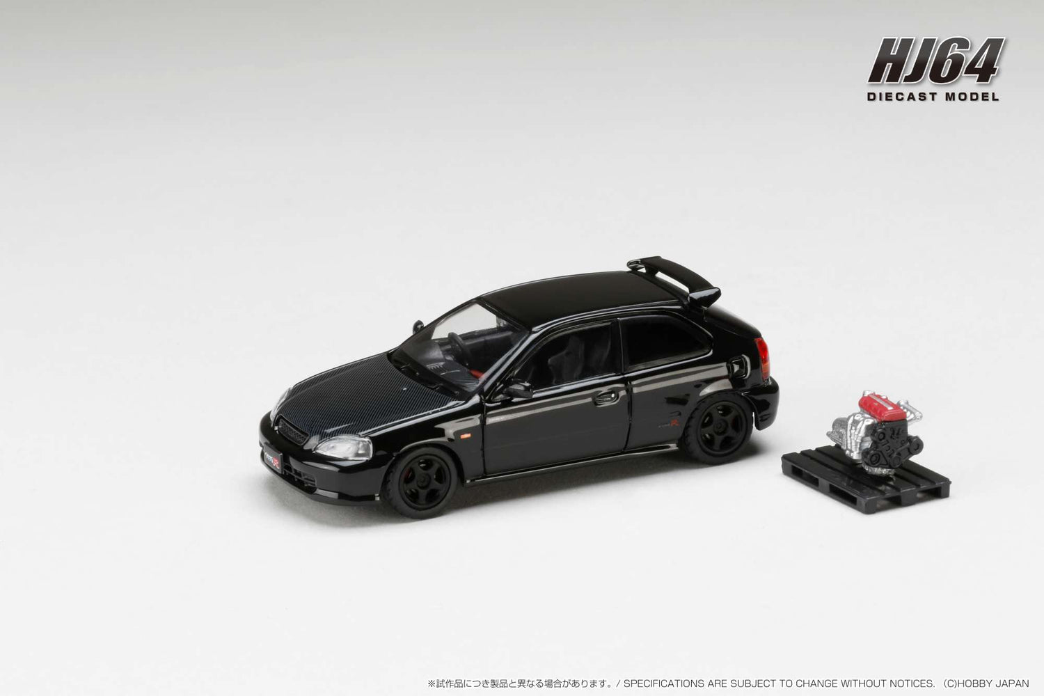 Hobby Japan 1:64 Honda Civic Type-R (EK9) Early Version Custom in Starlight Black Pearl with Engine Display