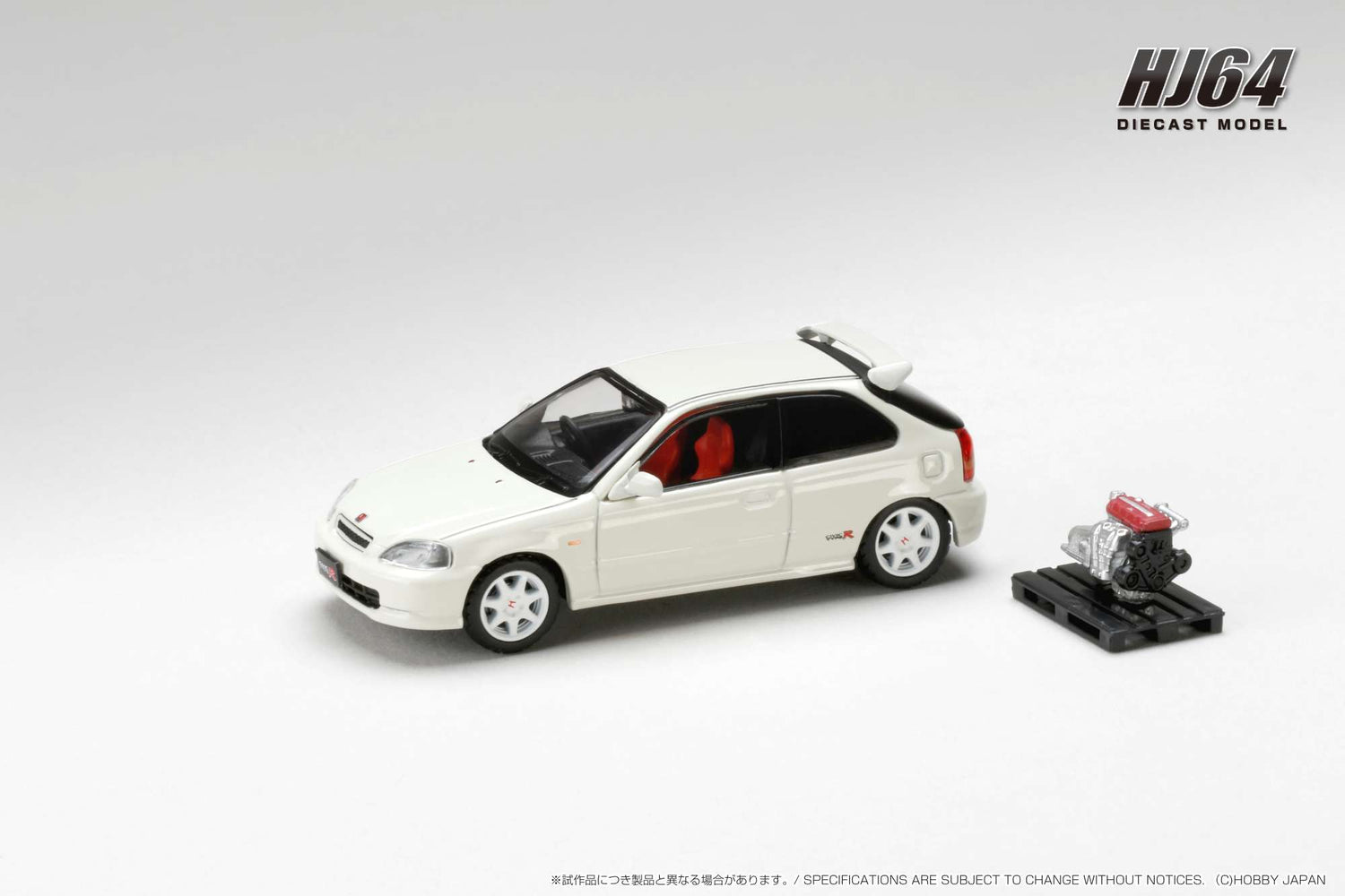 Hobby Japan 1:64 Honda Civic Type-R (EK9) Early Version in Championship White with Engine Display